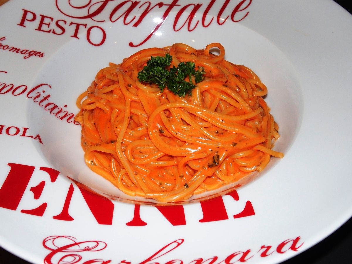 Vous vous dites sûrement "C'est quoi ça?" Et bien, ce sont les pâtes de mon enfance. C'est DELICIEUX!. Encore une fois, une recette de mon grand-papa, économique et savoureuse. Si vous connaissez les pâtes aux "Cinque Pi" (pomodoro, prezzemollo, parmigiano, panna, pepe), vous adorerez cette recette. Je ne mets pas de parmesan, mais du gruyère et j'utilise du concentré tomate en faisant un roux pour que la sauce soit onctueuse, à la mode de mon grand-papa, vraiment!