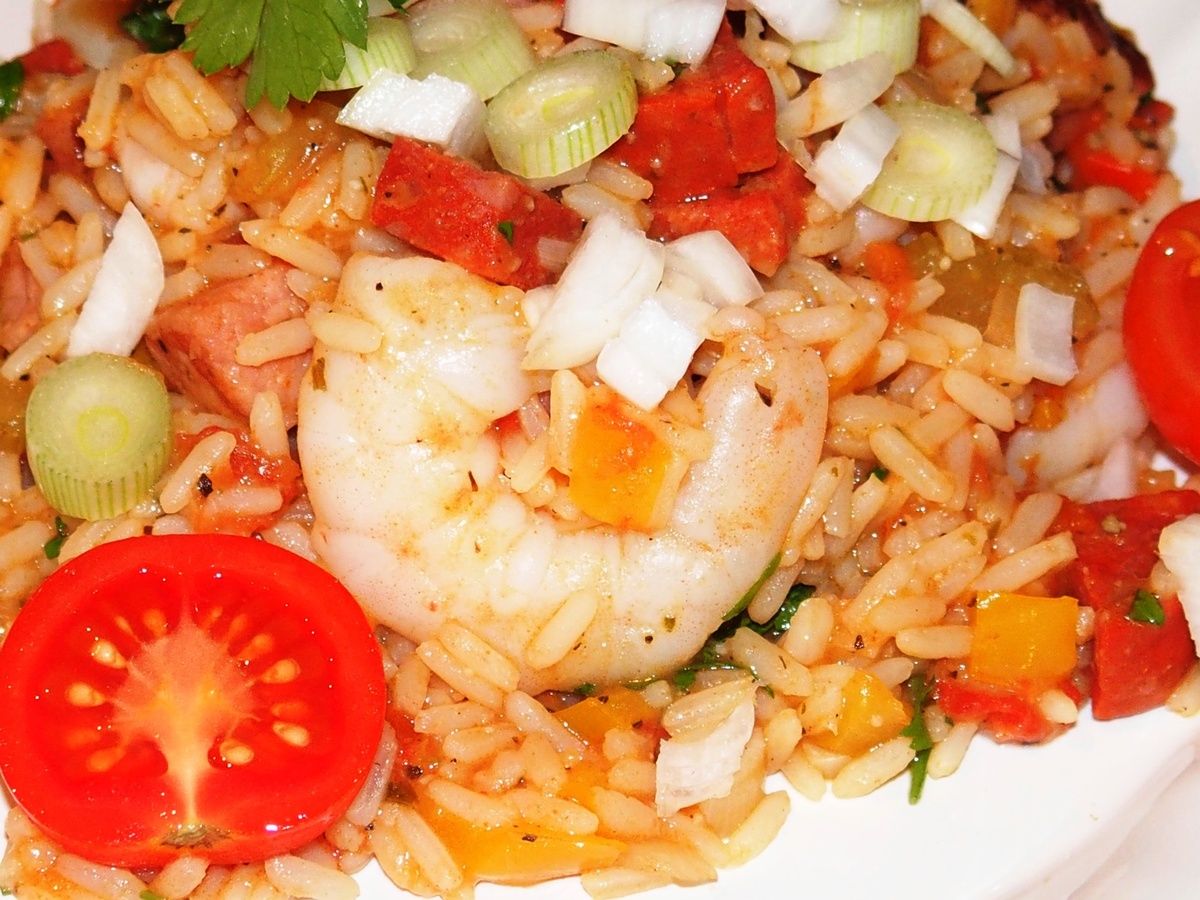 Il existe de multiples sortes de jambalaya. Avec du poulet, des écrevisses, des gambas. Comme pour la paella, on y met ce qu'on aime. Ma recette sert donc de base. A vous d'adapter les ingrédients selon vos goûts!