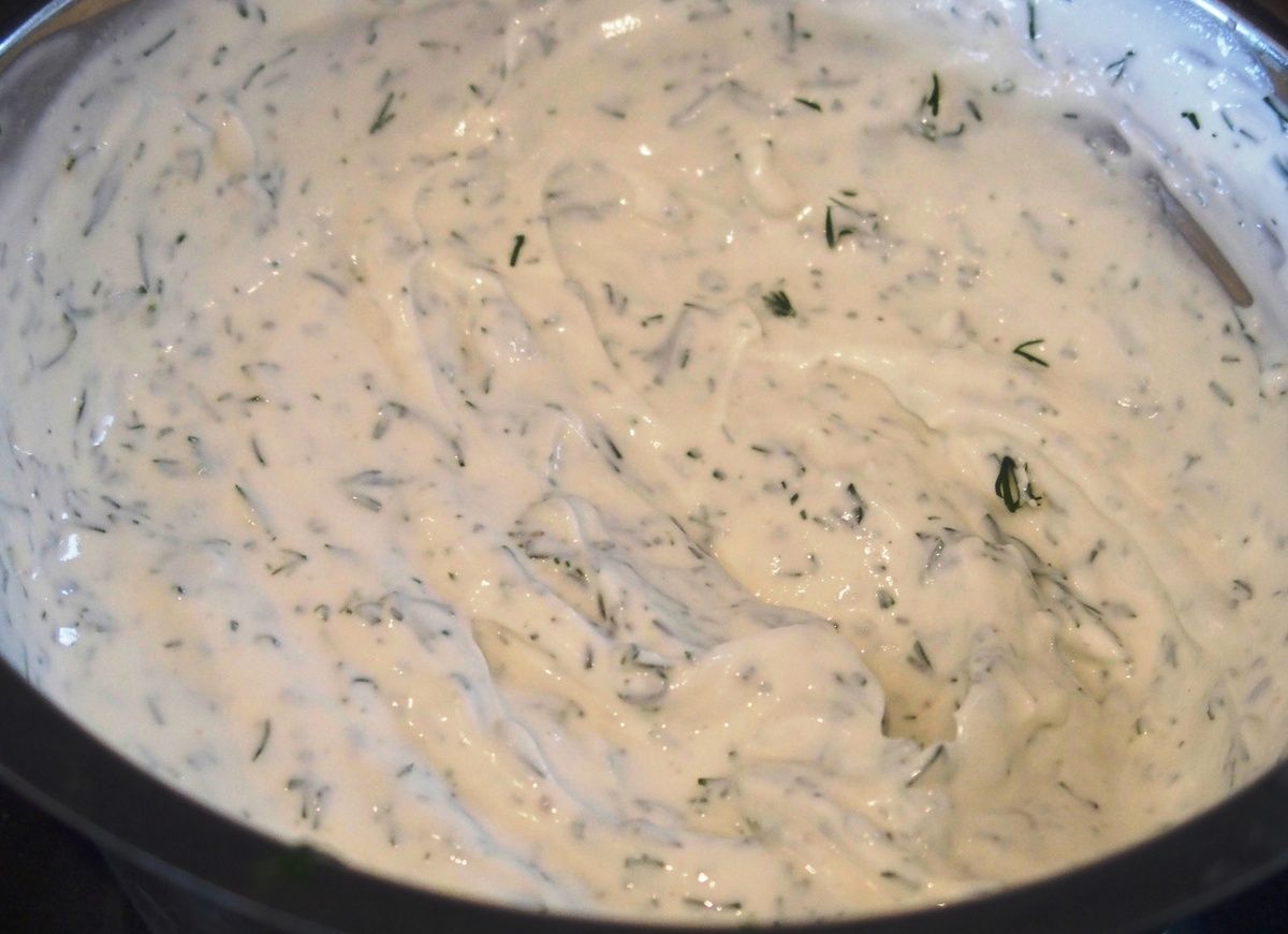 4) Dans un récipient, détendre la ricotta avec un fouet. Ciseler l'aneth finement. En mettre la moitié dans la ricotta, soit l'équivalent d'une grosse cuillère à soupe (garder l'autre moitié pour la sauce à la fin de la recette). Saler, poivrer et ajouter 2 càs de jus de citron. Bien mélanger.
