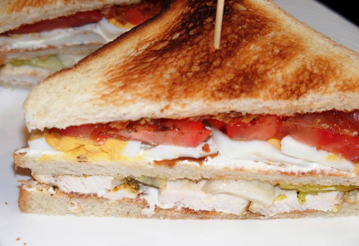 Bienvenue au club et régalez-vous avec ce premier club au poulet, oeuf, lard et plein de choses encore...