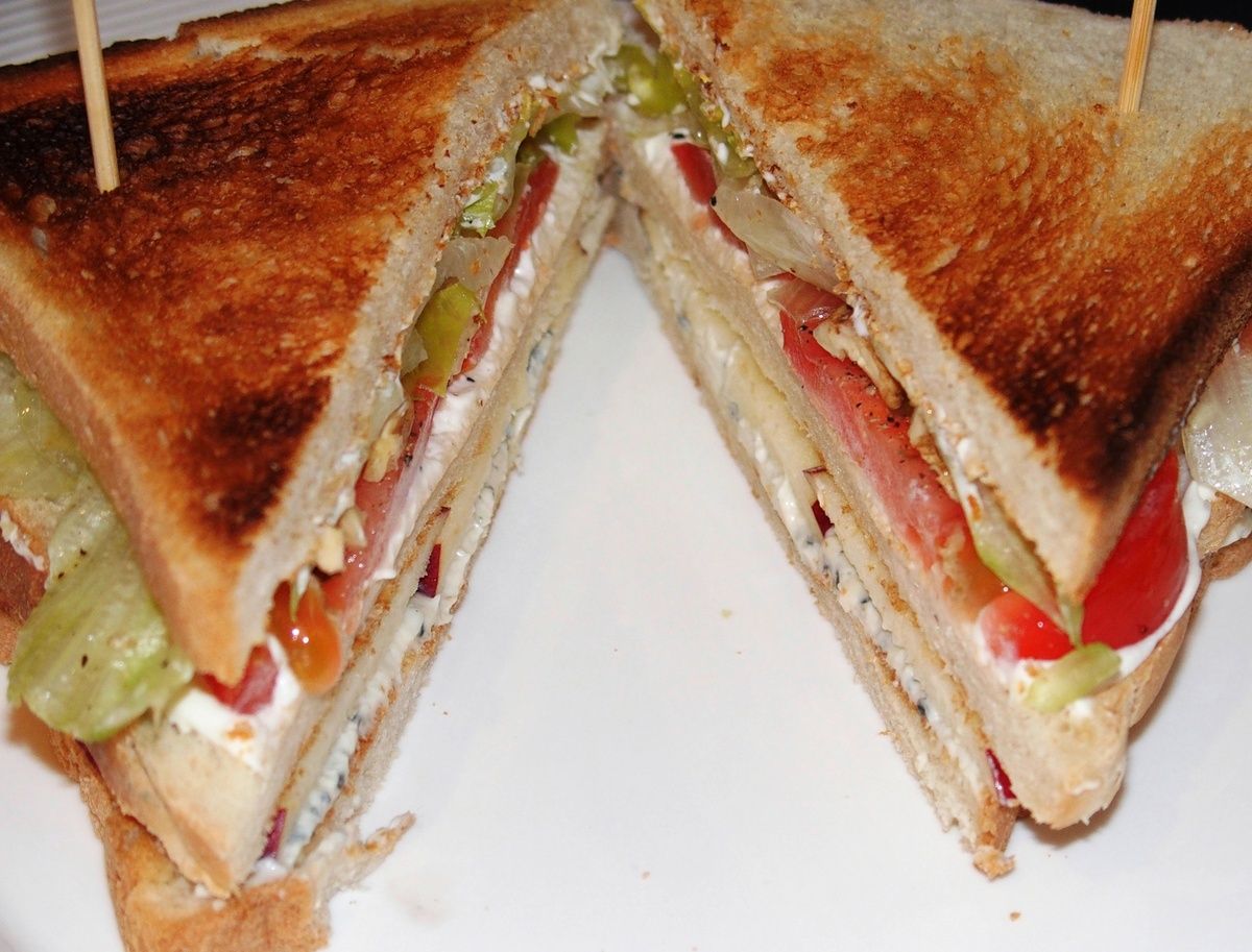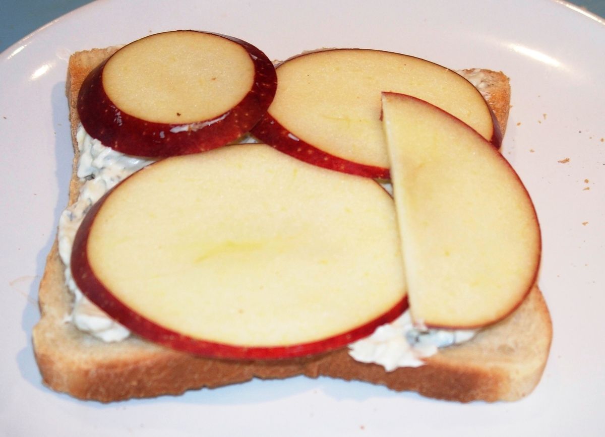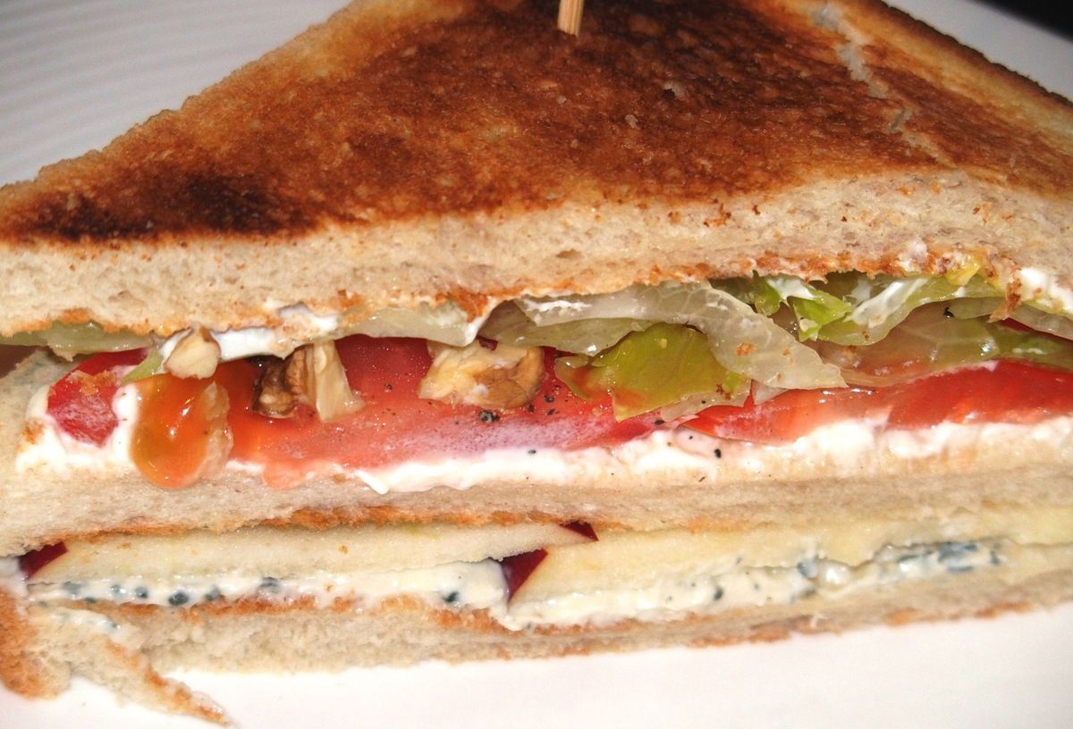 Si vous aimez le roquefort, vous serez enchantés par ce club sandwich, croquant grâce aux cerneaux de noix, fruité et frais grâce à la pomme et fondant grâce au mélange de fromages.