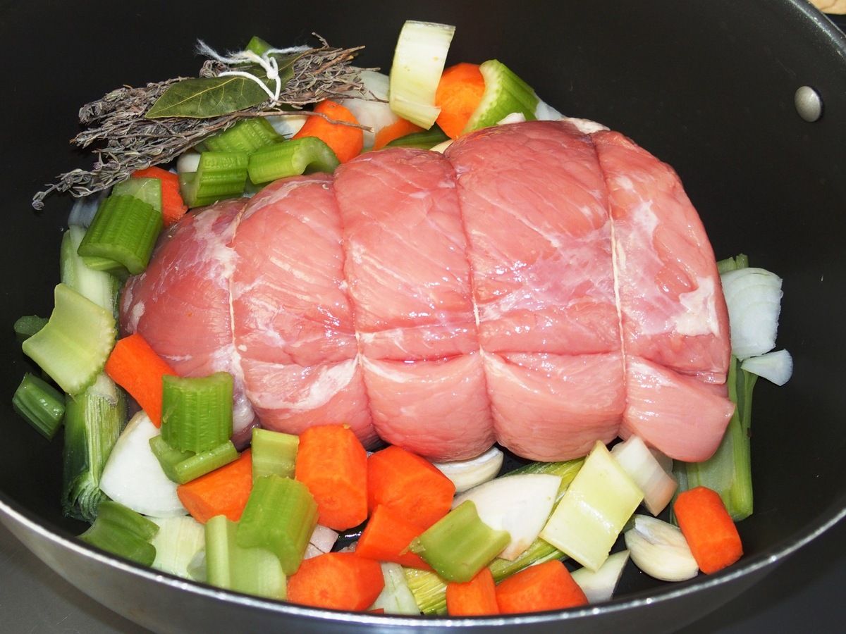 2) A l'ébullition, baisser le feu sur feu doux, couvrir avec un couvercle et cuire ainsi 50 minutes (retourner le veau après 25 minutes). Laisser refroidir le veau dans son bouillon, avec le couvercle de la cocotte durant toute la nuit ou au moins plusieurs heures.