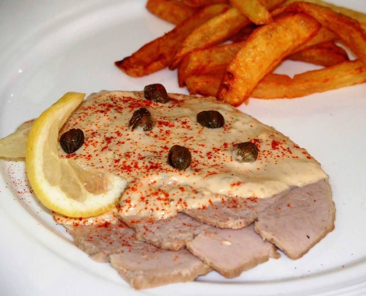 Un délice. Rien d'autre à dire. Un plat qui passe si bien en été, lorsqu'il fait chaud. A déguster froid, c'est de la tuerie. Un beau morceau de veau cuit dans un bouillon de légumes. Une sauce onctueuse au thon, aux oeufs, à l'huile d'olive, aux câpres, au citron.
