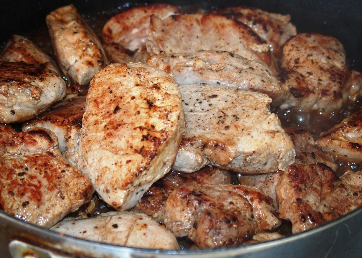 1) Dégraisser un peu si nécessaire les filets mignons à l'aide d'un petit couteau à fine lame. Couper les filets en tranches d'environ 1,5 cm d'épaisseur en diagonale. Aplatir un peu les tranches et les mettre dans un plat. Saler et poivrer des deux côtés chaque tranche. Dans une poêle, faire revenir les tranches dans un filet d'huile à rôtir à feu moyen-vif 3 à 4 minutes de chaque côté. Procéder en plusieurs fois si nécessaire. Mettre toutes les tranches dans la poêle et verser le porto (vous pouvez flamber si cela vous dit). Laisser réduire presque entièrement durant environ 5 à 10 minutes. Réserver la viande avec le jus au porto dans un plat.