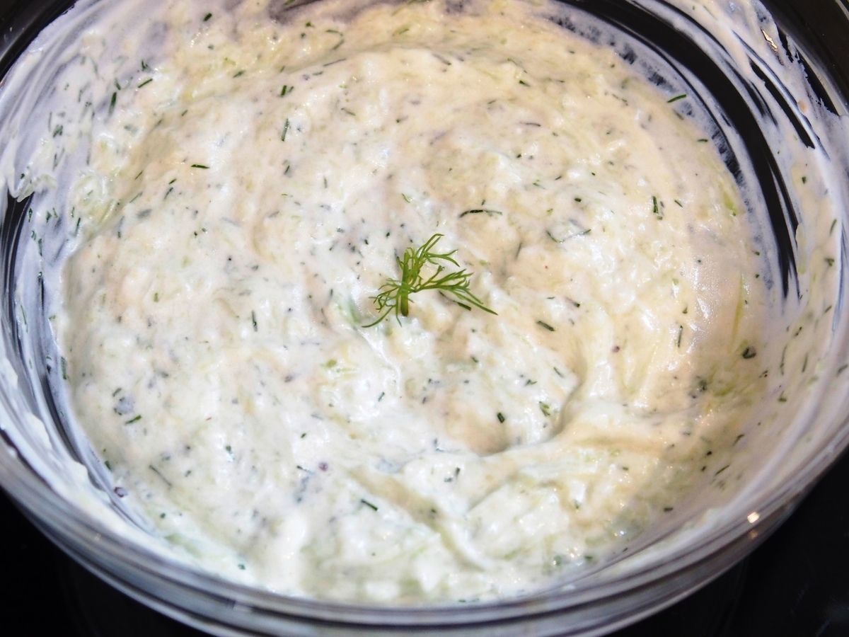 Recette grecque par excellence, à base de yaourt (grec donc), de concombre, d'ail et d'aneth. Certaines recettes comportent de la menthe au lieu de l'aneth, c'est parfait aussi, même si cela ressemble plus à ce moment-là à un tzatziki ... libanais.