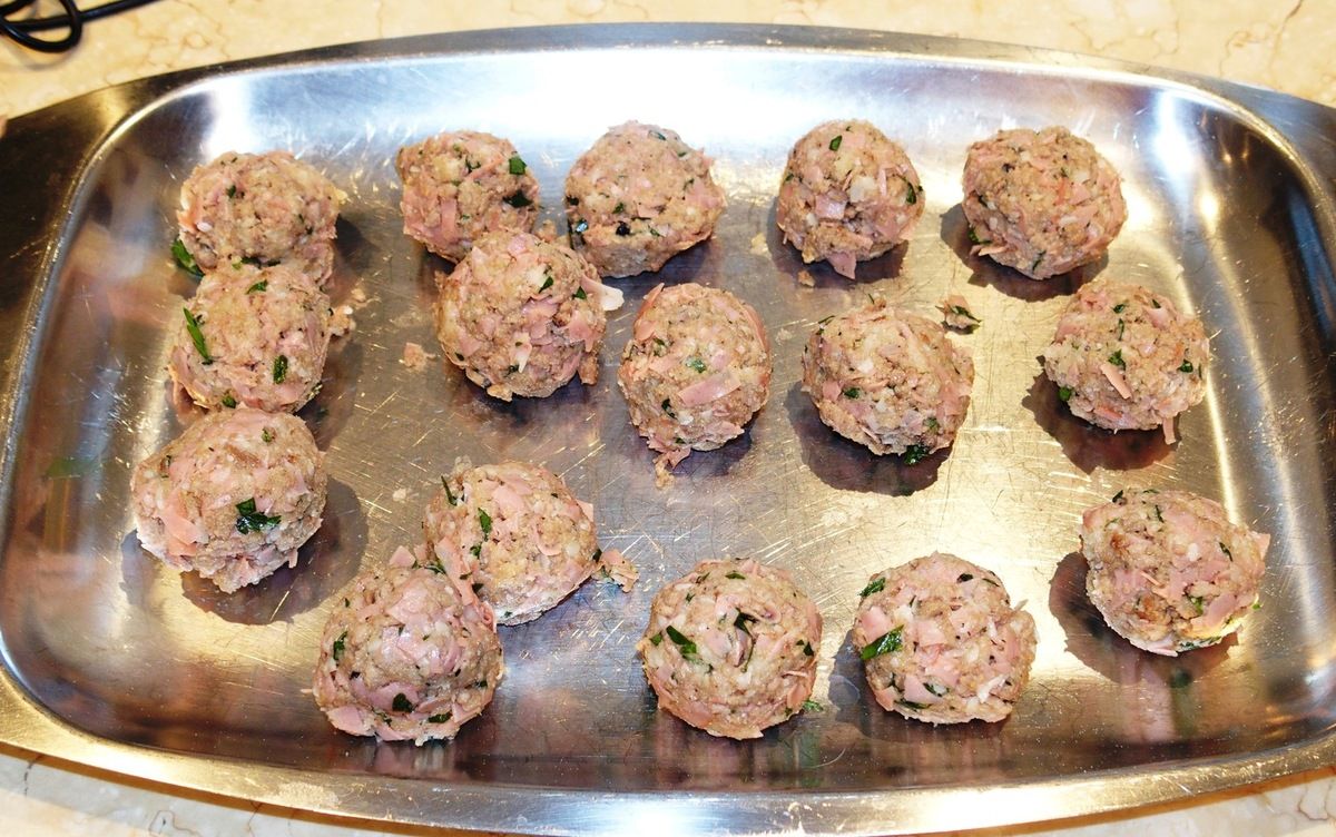3) Entre les paumes, former de petites boules de la taille d'une noix et disposer sur un plat. Si le mélange vous semble trop collant et difficile à travailler, ajouter un peu de farine.