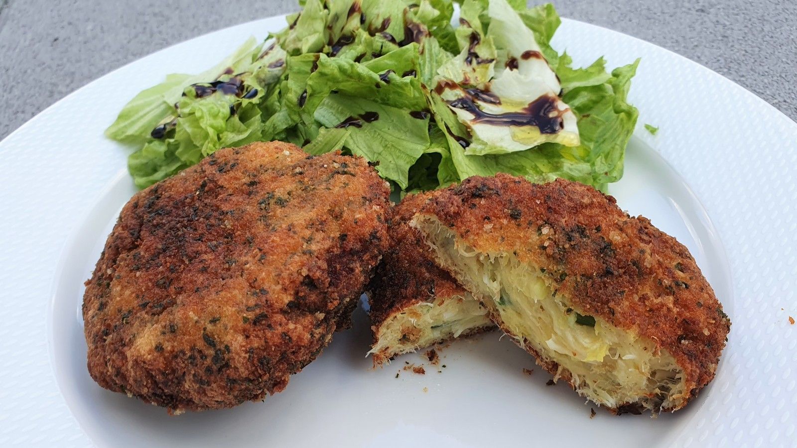 Ah... rien à voir avec ces poissons panés industriels. Bon, c'était un peu le but de cette recette. Du cabillaud, de la pomme de terre, des oignons nouveaux, le tout pané avec une chapelure aux herbes. Plus sain, fait maison, donc meilleur, forcément.