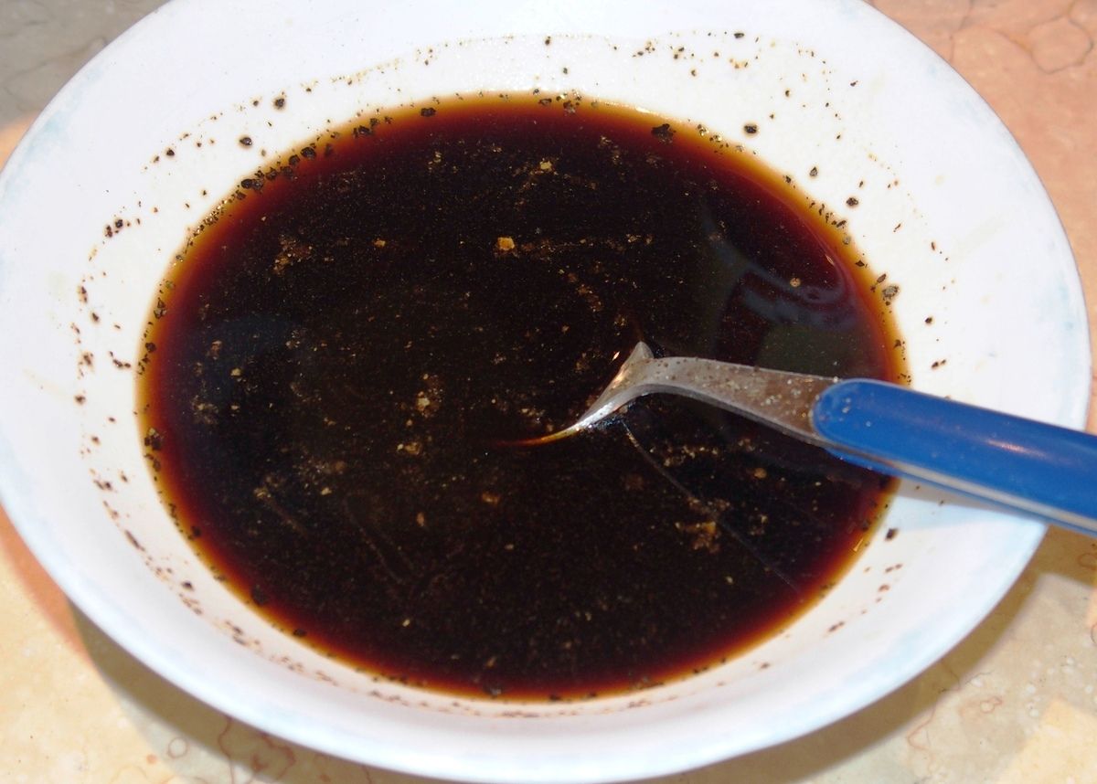 4) Mélanger tous les ingrédients de l'assaisonnement dans un bol. Torréfier une poignée de noix de cajou dans une poêle et hacher grossièrement la coriandre.