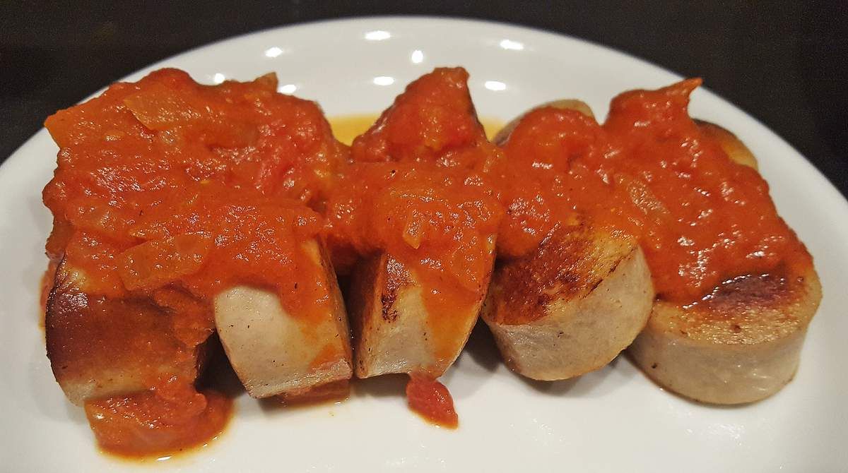 De la saucisse de veau pour ma part (mais prenez une vraie "Bratwurst" si vous voulez vraiment vous la jouer typique), nappée d'un délicieux condiment fait de tomates, curry, vinaigre, moutarde, sucre et ketchup. J'ai beaucoup aimé, oui oui. Et non, cela n'est pas doucereux. C'est top. Et cela va vous donner une nouvelle idée pour cuisiner la petite saucisse qui pleure d'ennui dans votre réfrigérateur. Soyez sympas, ne la laissez pas dans cet état.