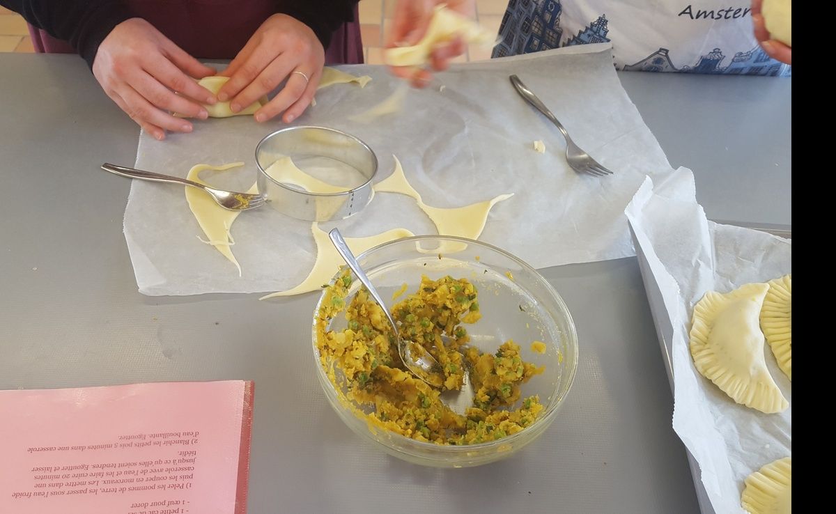 La cuisine indienne est vaste. En ce qui concerne ces petits chaussons, ils se cuisinent aussi avec des feuilles de brick, puis jetés en friture. Moi, j'avais envie d'un peu plus de légèreté. J'ai donc utilisé de la pâte brisée et je les ai cuits au four. TOP!