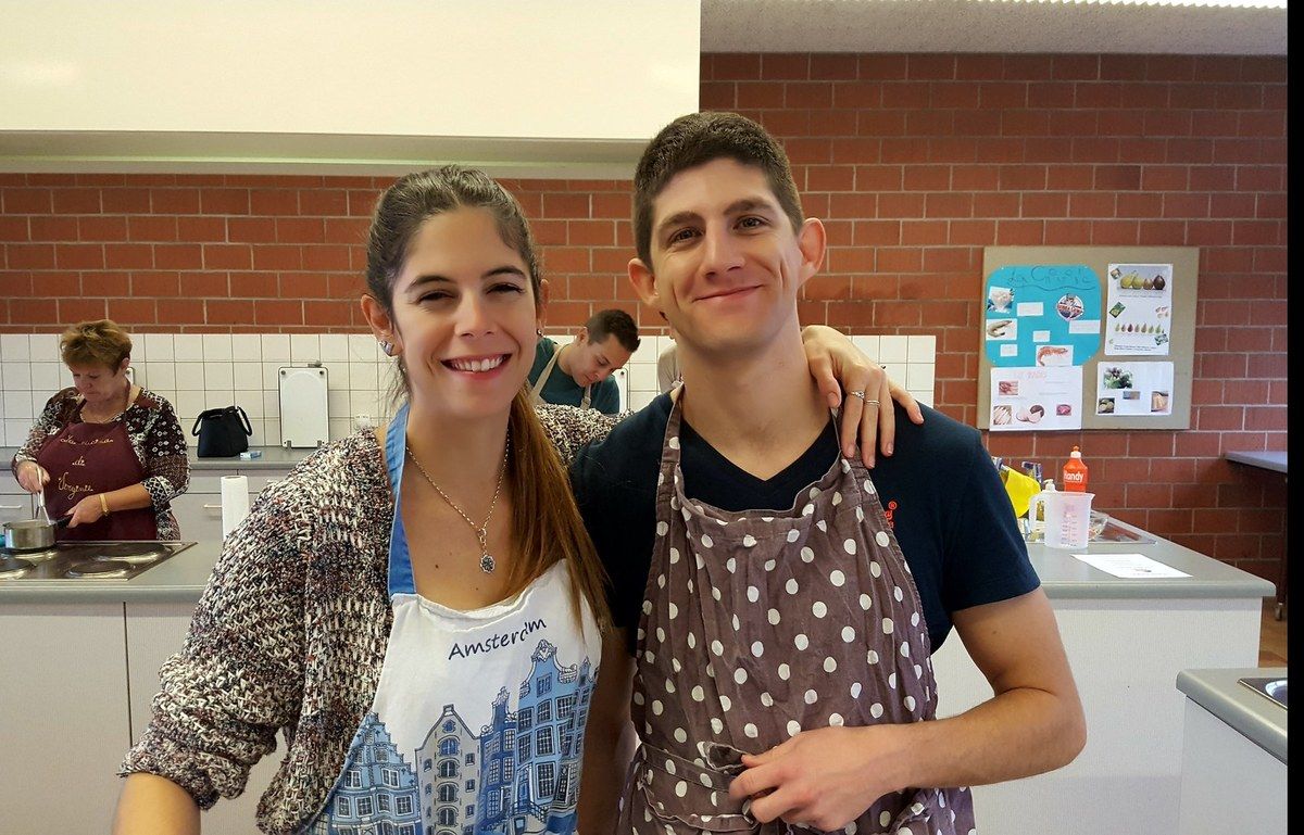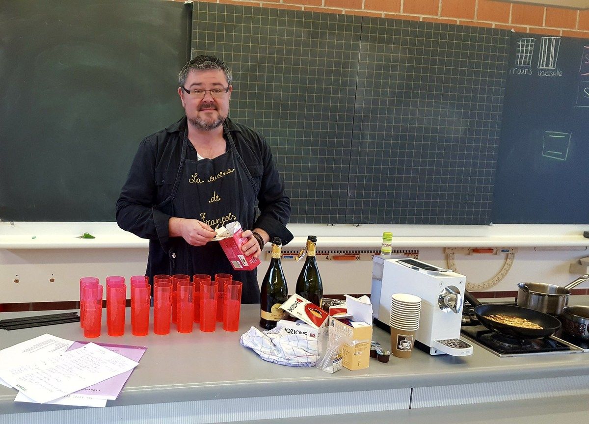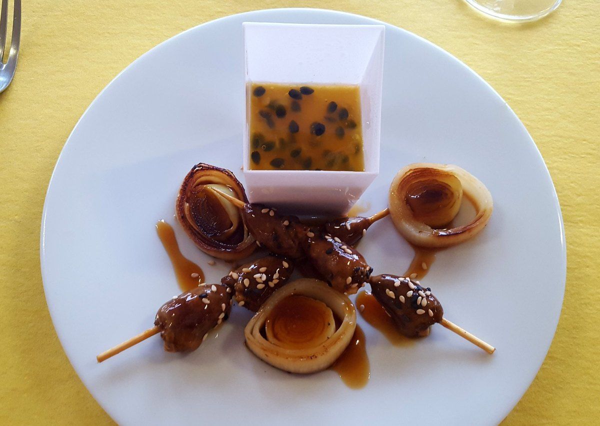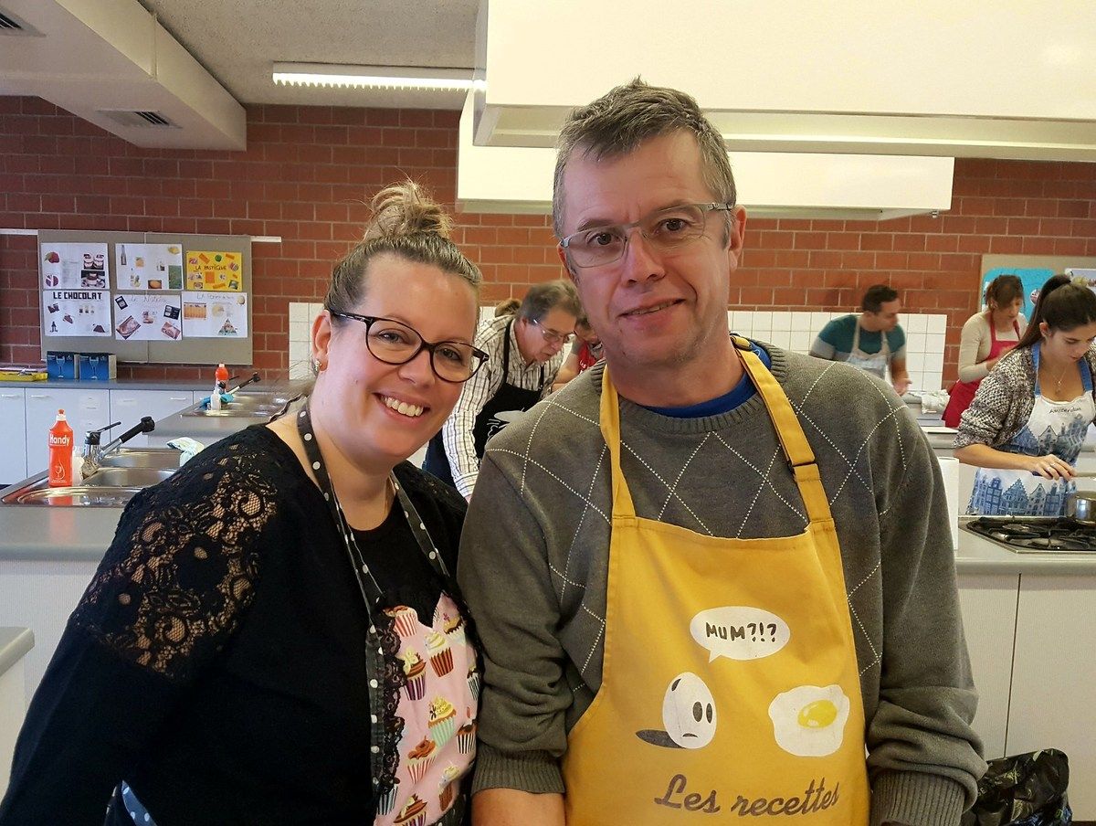 Alors là c'était vraiment top. Je fais encore un gros bec à mes 6 petits couples trop géniaux. Et à mon homme qui m'a épaulée. On a passé un moment super au cours de cuisine d'aujourd'hui. La cuisine à deux, que du bonheur. Au menu panna cotta de foie gras et coulis de fruits de la passion, coeurs de poulet teriyaki en brochettes, filets de daurade sur embeurrée de fenouil, sauce à la mandarine, filet mignon en cuisson lente, crème de truffe, purée au persil montée à l'huile d'olive et poêlée de carottes multicolores, poires pochées au vin rouge et aux épices sur crème anglaise au lait d'amandes. Du taf mais dans l'amûûûr et la bonne humeur.