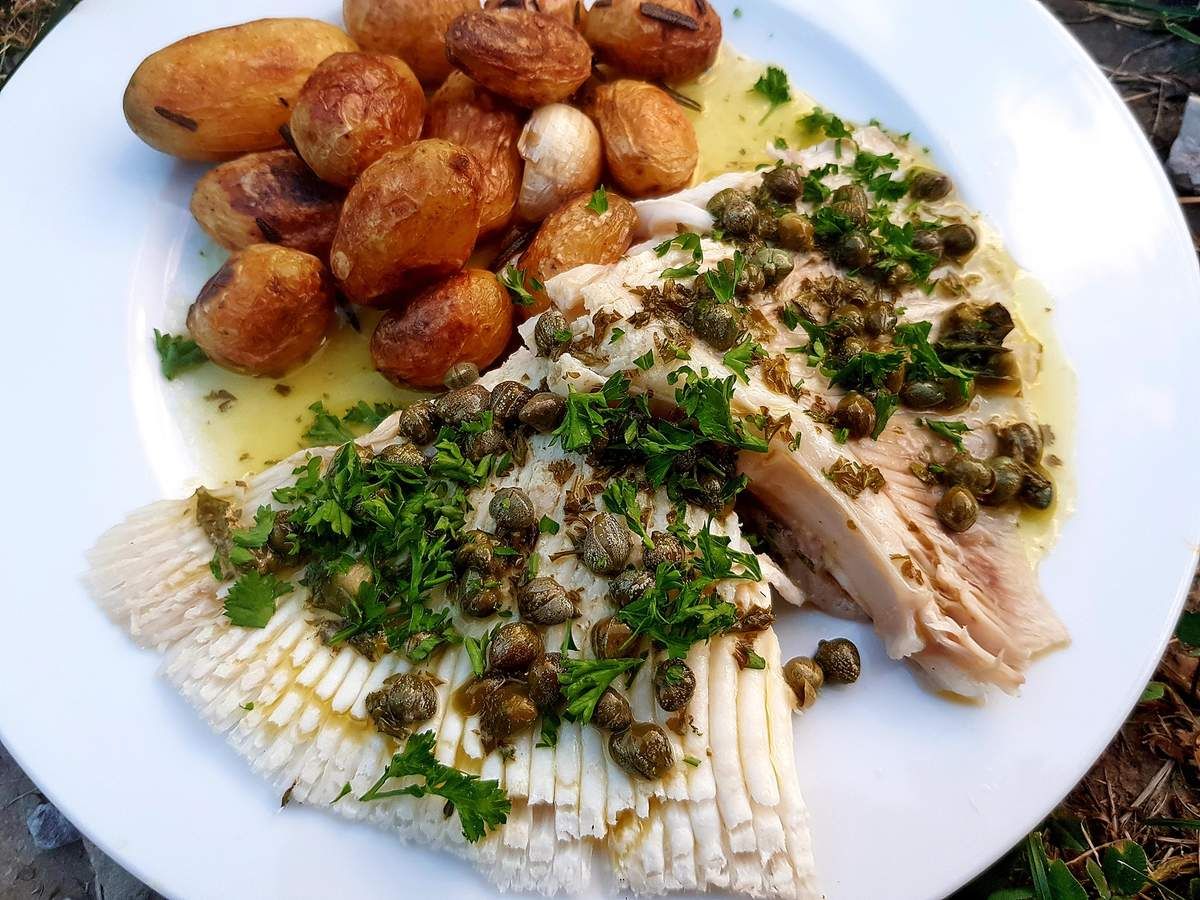 A la maison, c'est parti. En moins de temps qu'il n'en faut pour la déguster, je me mets à la préparation de mon aile de raie. Et je me sens pousser des ailes. Car au moment de la savourer, accompagnée de cette magnifique sauce aux câpres et au citron, je touche le paradis. Et mon mari aussi.