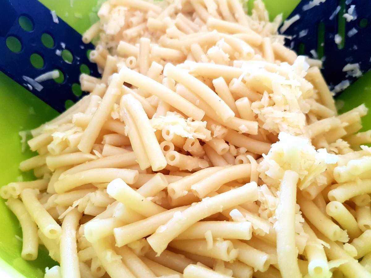 3) Parallèlement à la cuisson de la viande, râper le Cheddar. Cuire les macaronis al dente, les égoutter et les verser dans un saladier avec un filet d'huile d'olive. Mélanger pour éviter qu'ils ne collent. Ajouter dans le saladier des macaronis 200g de Cheddar et bien mélanger. Réserver et laisser tiédir.