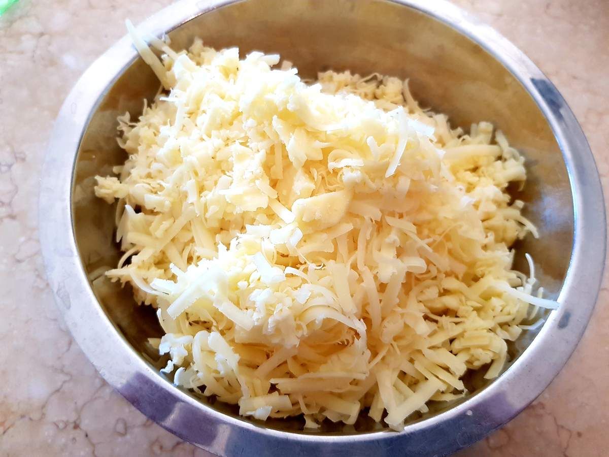 4) Séparer les jaunes des blancs d'oeufs. Garder 2 blancs et 3 jaunes. Dans la cocotte de la viande, ajouter 100g de Cheddar râpé ainsi que les 2 blancs d'oeufs. Bien mélanger.