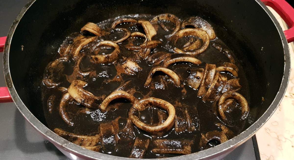 J'ai réalisé cette sauce avec mes calamars découpés en anneaux mijotés longtemps. Afin qu'ils soient tendres à souhait. Un délice. Ah et puis j'ai fait deux essais. J'ai acheté des tagliatelles standards donc blanches et des tagliatelles noires à l'encre de seiche, pour la couleur. Et bien croyez-moi, les tagliatelles à l'encre de seiche ont donné une plus jolie assiette. Les tagliatelles blanches et la sauce noire ont plutôt donné un gris pas top. C'est logique me direz-vous.