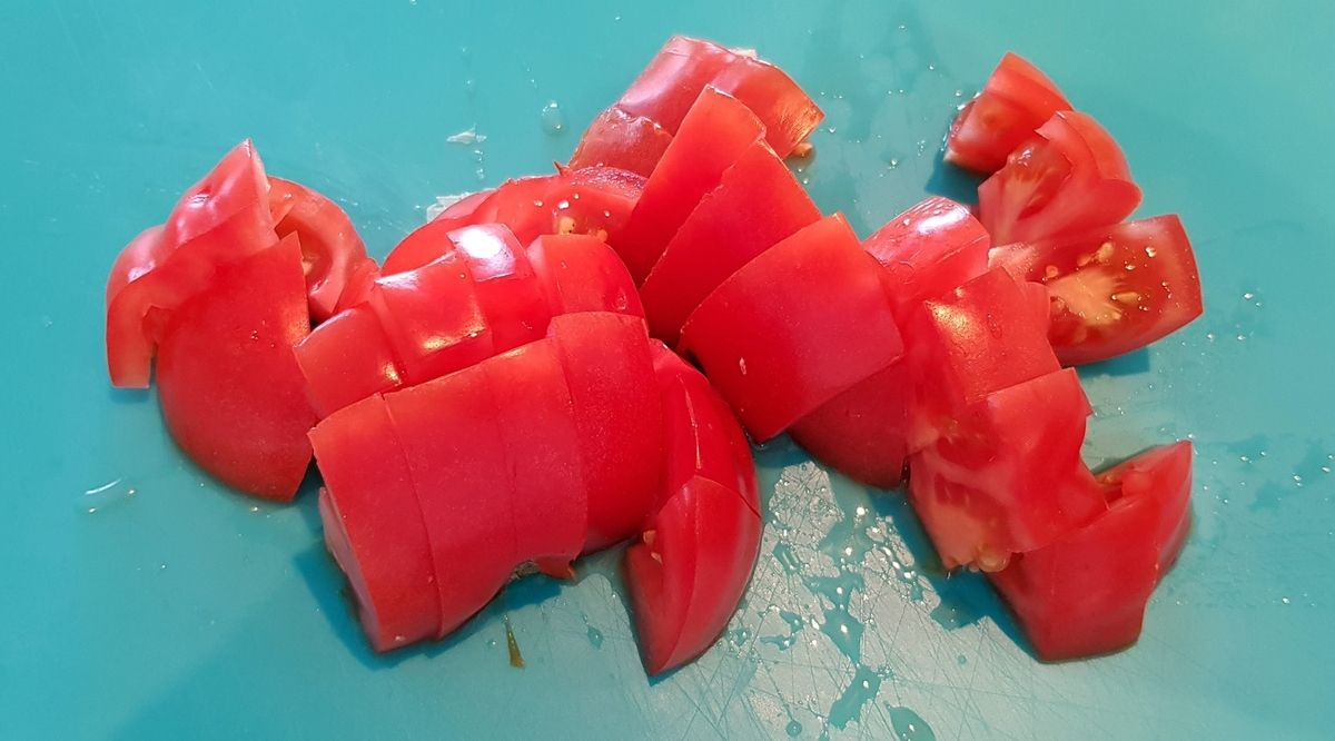 4) Préparer parallèlement le jus d'agneau: couper en petits dés les carottes, le céleri branche et l'oignon. Couper la tomate en morceaux. Couper la tête d'ail en deux à l'horizontale. Hacher grossièrement le persil.
