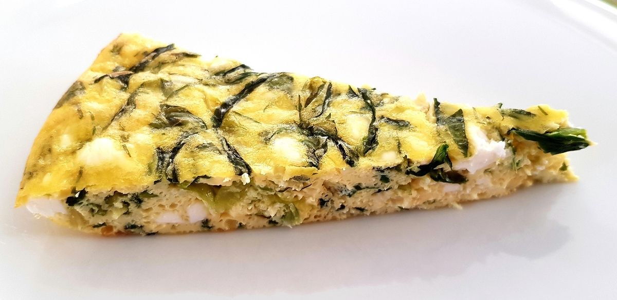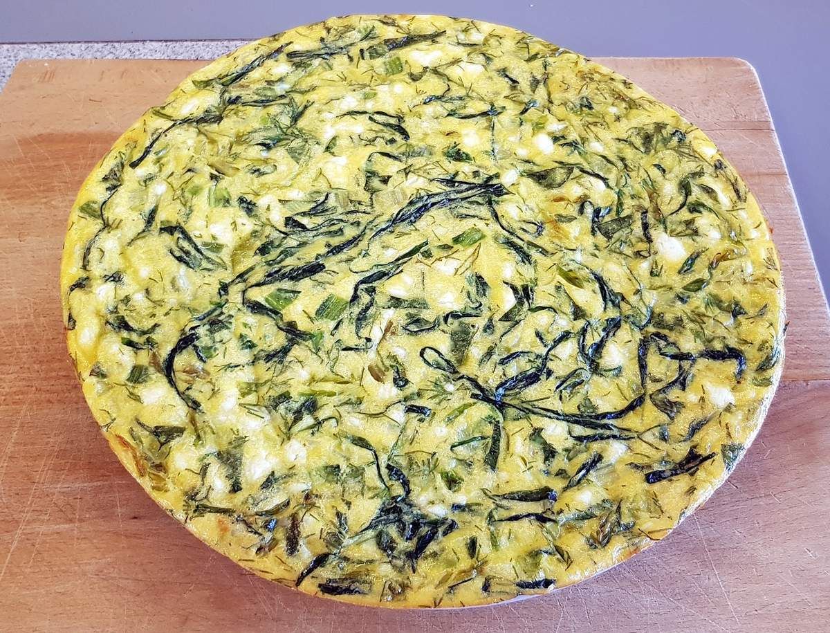 C'est une recette d'omelette pascale d'inspiration grecque, d'une simplicité folle je dois dire et elle a de la gueule!. Une petite merveille réalisée avec du fromage de brebis (j'ai pris la marque Gazi que j'ai trouvée en grande surface à la Coop), de la laitue romaine, des oignons nouveaux, de l'aneth et de la menthe. C'est exquis!