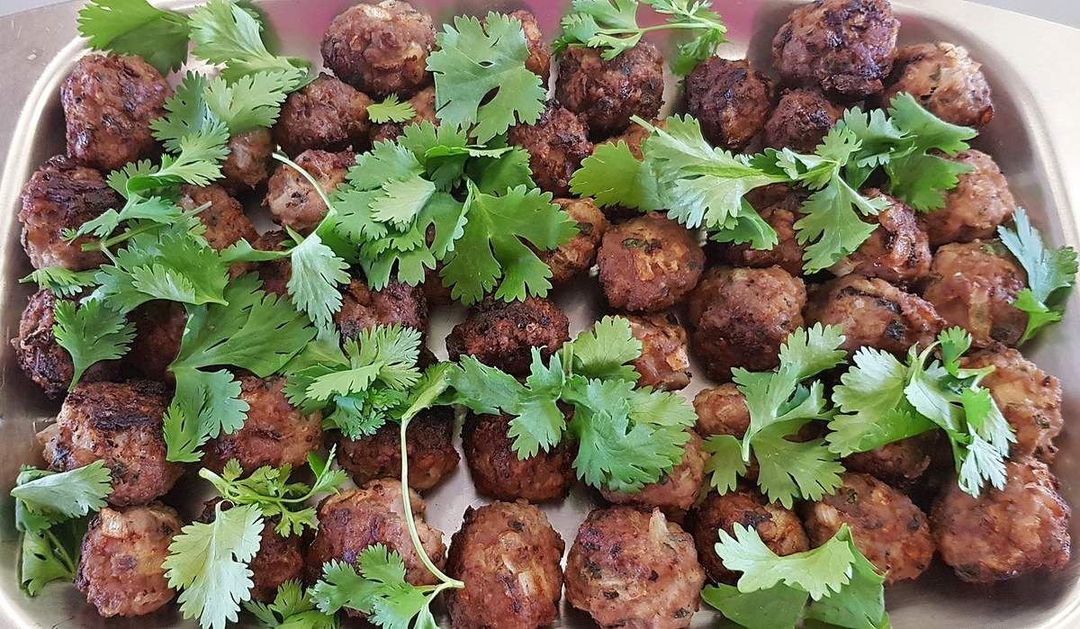 6) Détacher les feuilles de coriandre, mettre les boulettes dans un plat, parsemer de feuilles de coriandre. Déguster chaud, tiède ou froid, accompagnées de Sauce yaourt, concombre et menthe ou de Tzatziki.