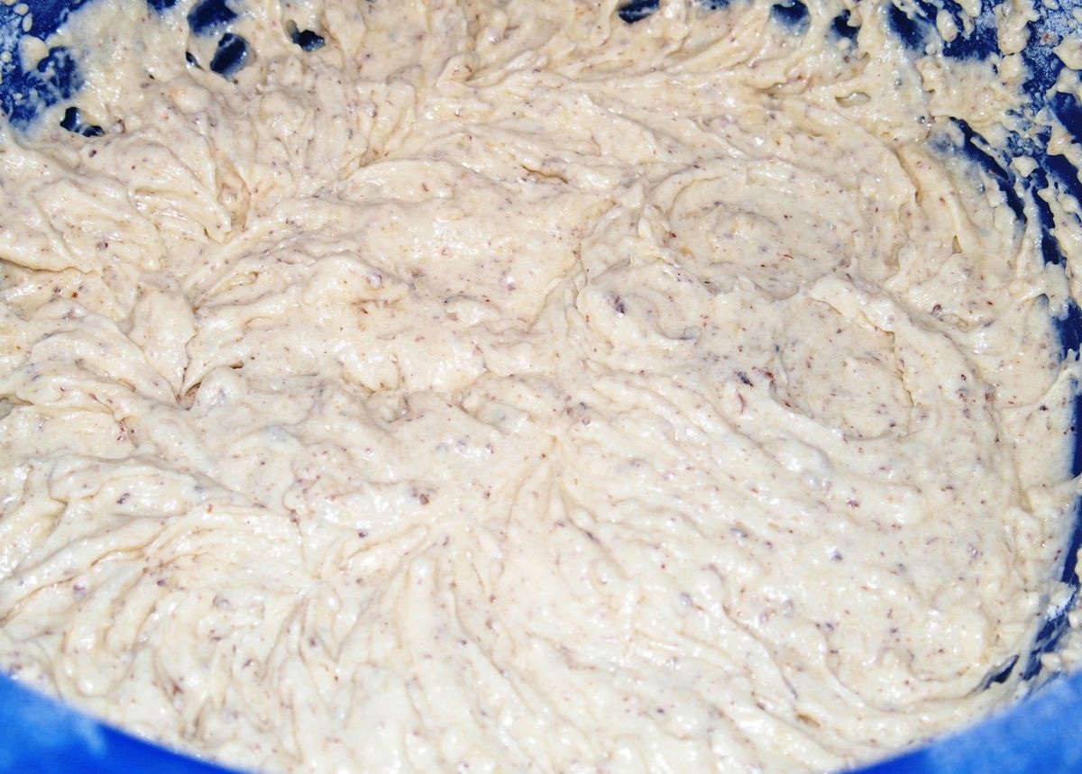 3) Dans un autre récipient, mélanger la farine, le sel, le sucre vanillé, les noisettes moulues et la poudre à lever. Prendre un batteur électrique (ou un fouet si vous n'avez pas de batteur). Dans le récipient contenant le sucre et le beurre, ajouter les oeufs un à un en battant à faible puissance. Lorsque le mélange est homogène, ajouter l'autre mélange (farine, poudre à lever...) en plusieurs fois et en alternance avec le lait afin d'éviter les grumeaux, toujours en battant jusqu'à obtenir une pâte lisse.