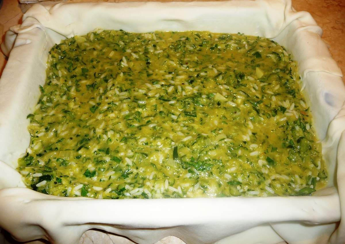 4) Hacher le persil. Mettre les oeufs dans un grand récipient et mélanger avec un fouet. Ajouter le persil, le gruyère râpé, le riz et les courgettes. Saler et poivrer.