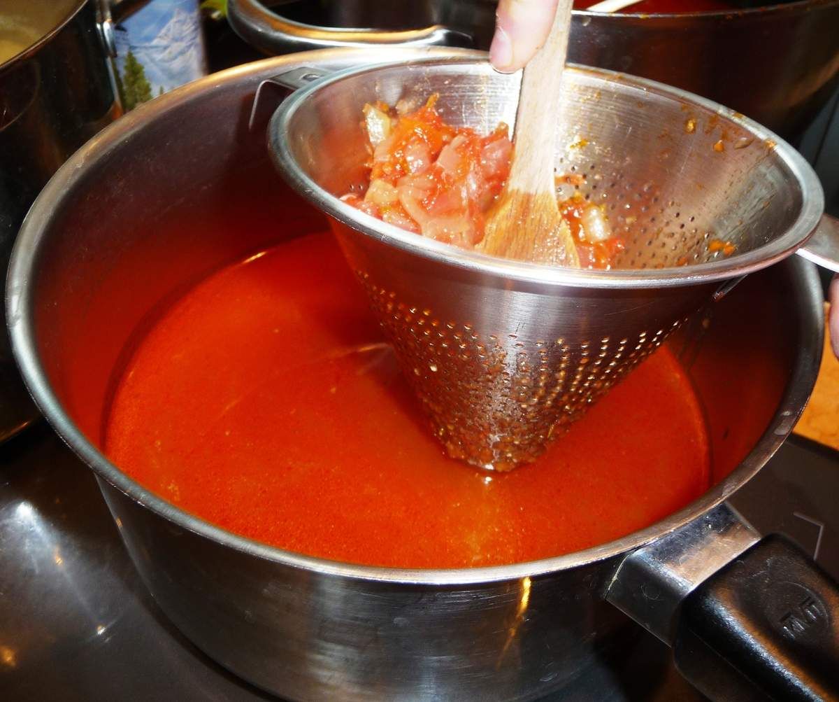 5) Retirer les morceaux de lapin et mettre dans un récipient.. Passer la sauce à travers un chinois: