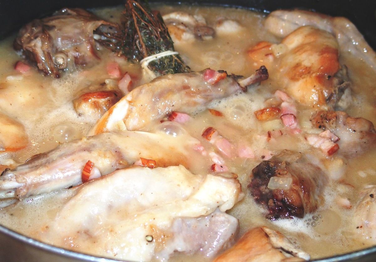 - un lapin d'environ 1,5 kg à 2 kg découpé en morceaux avec les abats