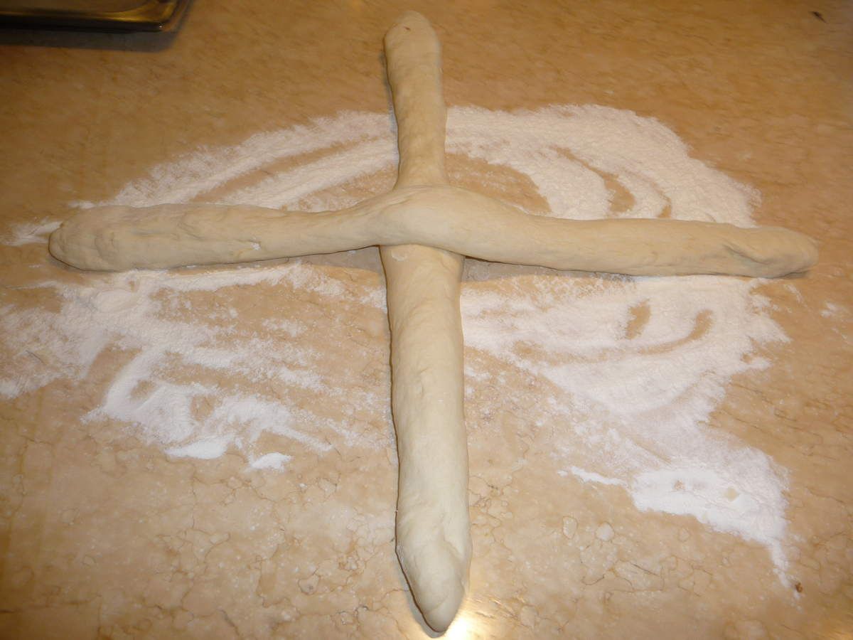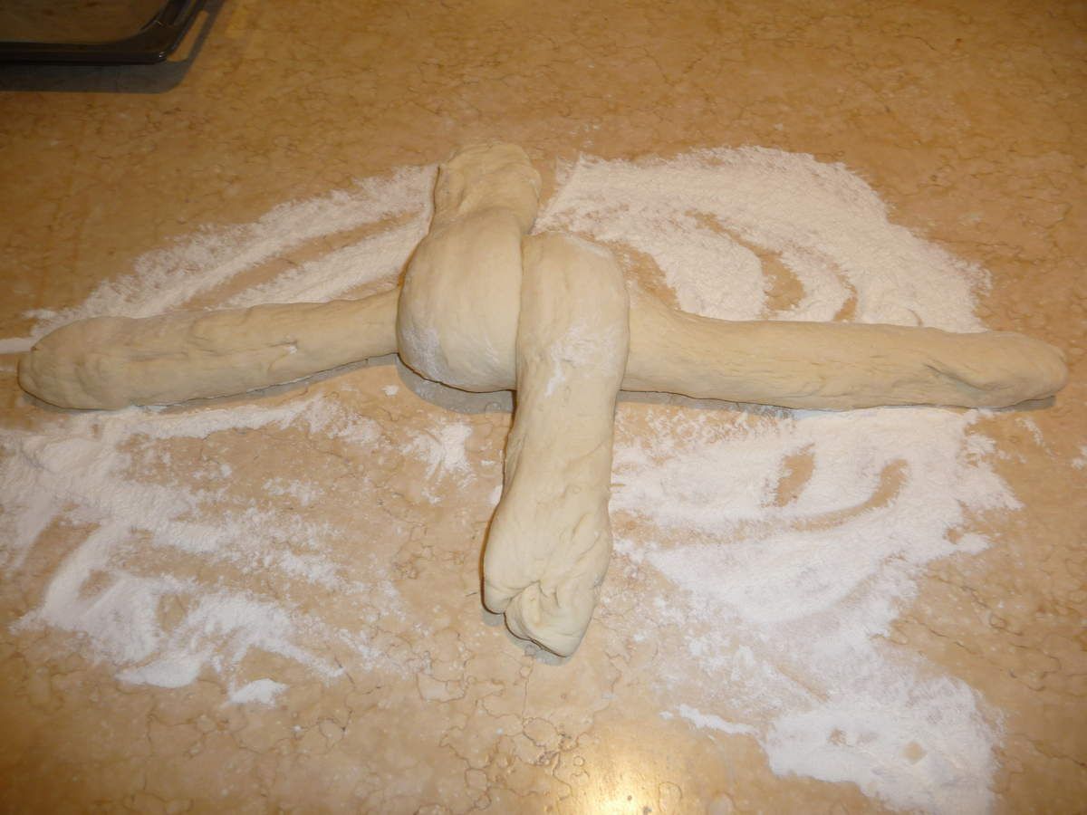 - Réunir les petites extrémités des boudins en travaillant un peu la pâte. Renverser la tresse contre le bas et l'entourer de toutes parts avec vos deux mains en la tapotant amoureusement pour lui donner une forme régulière: