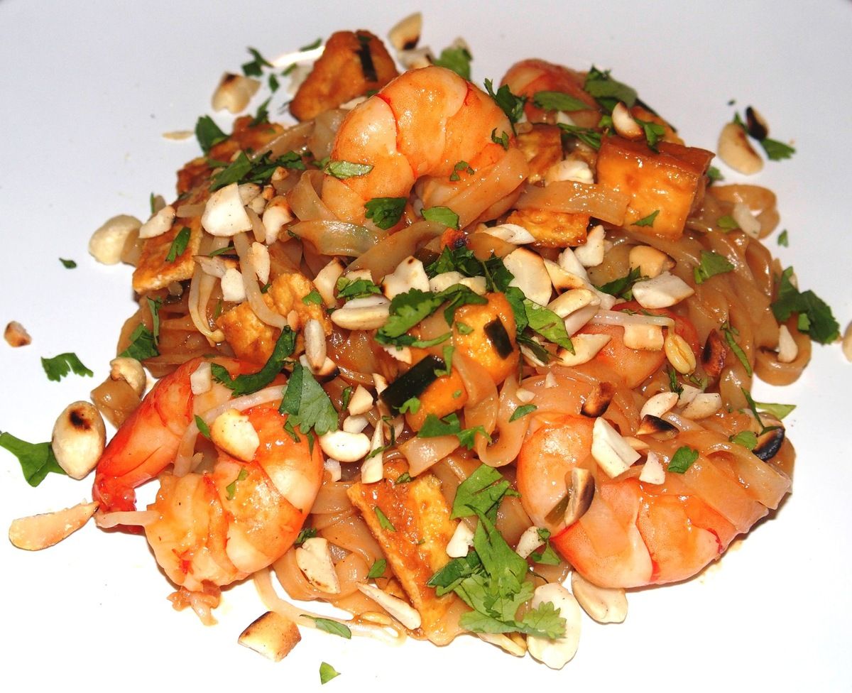 Voici une recette que je fais depuis longtemps et que je viens de rééditer. Nouvelles photos, nouvelle marche à suivre. Vous m'en direz des nouvelles! Si vous aimez la cuisine thaïlandaise, vous allez aimer ces bonnes petites nouilles de riz accompagnées d'ingrédients bien spécifiques: des crevettes, des oignons de printemps, des lanières d'omelette, des feuilles d'ail, du tofu, des pousses de soja, une sauce au tamarin et des cacahuètes torréfiées. Moi je les adore ces pad thaï!