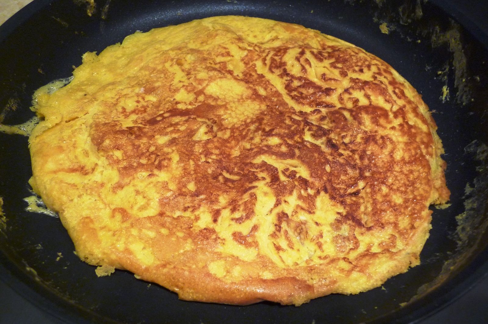 2) Fouetter les 2 oeufs dans un bol avec une 1 càc de sauce soja. Faire une omelette: faire chauffer de l'huile dans une poêle et verser les oeufs. A feu moyen, laisser prendre 3 minutes en remuant un peu avec une spatule puis laisser cuire 2 minutes. Retourner l'omelette et laisser cuire encore 1 minute. Laisser refroidir sur une assiette. Couper en lanières et réserver dans un bol.
