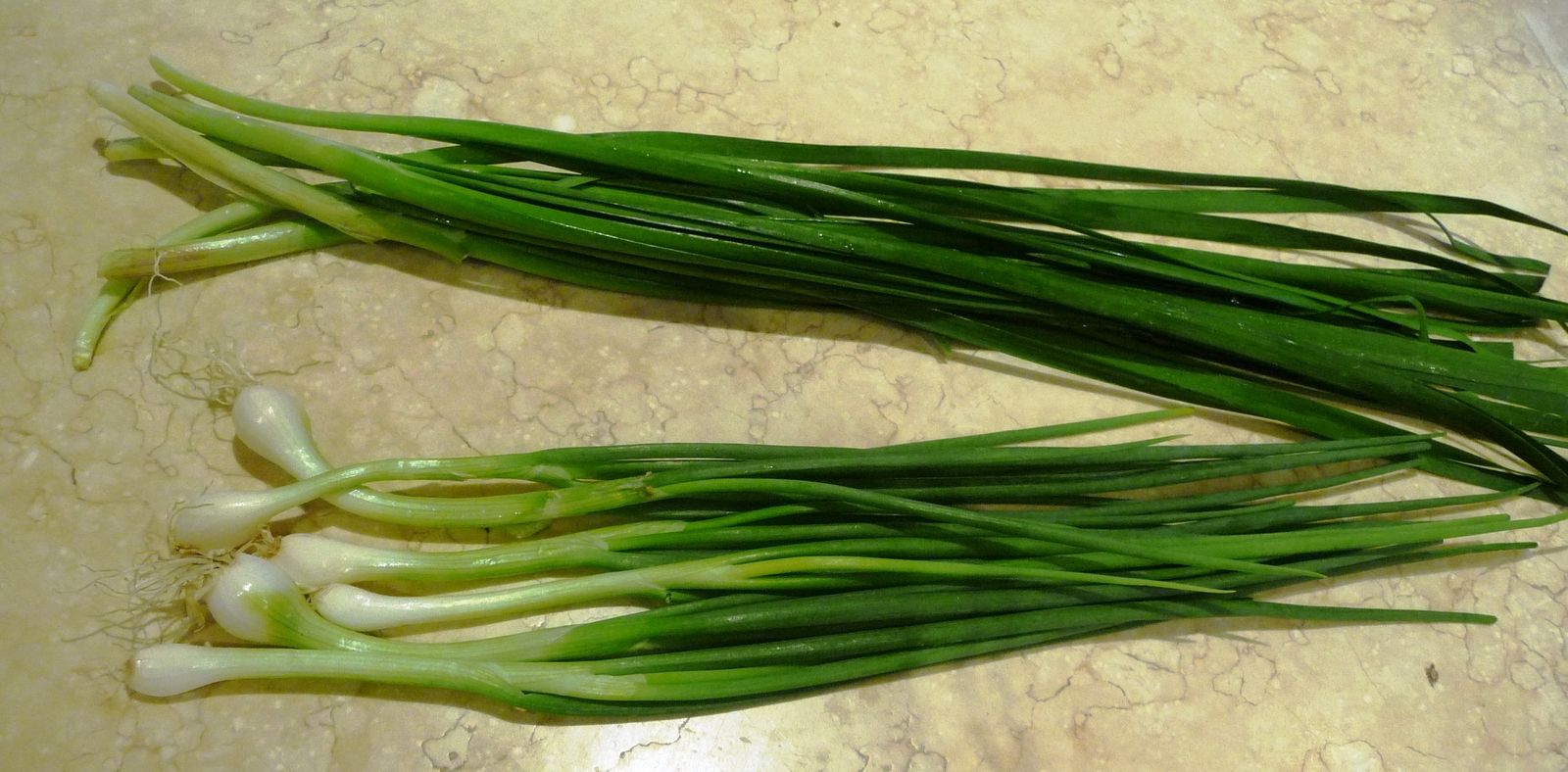 3) Couper un peu les extrémités des feuilles d'ail et des oignons de printemps et ciseler. Réserver dans un bol.