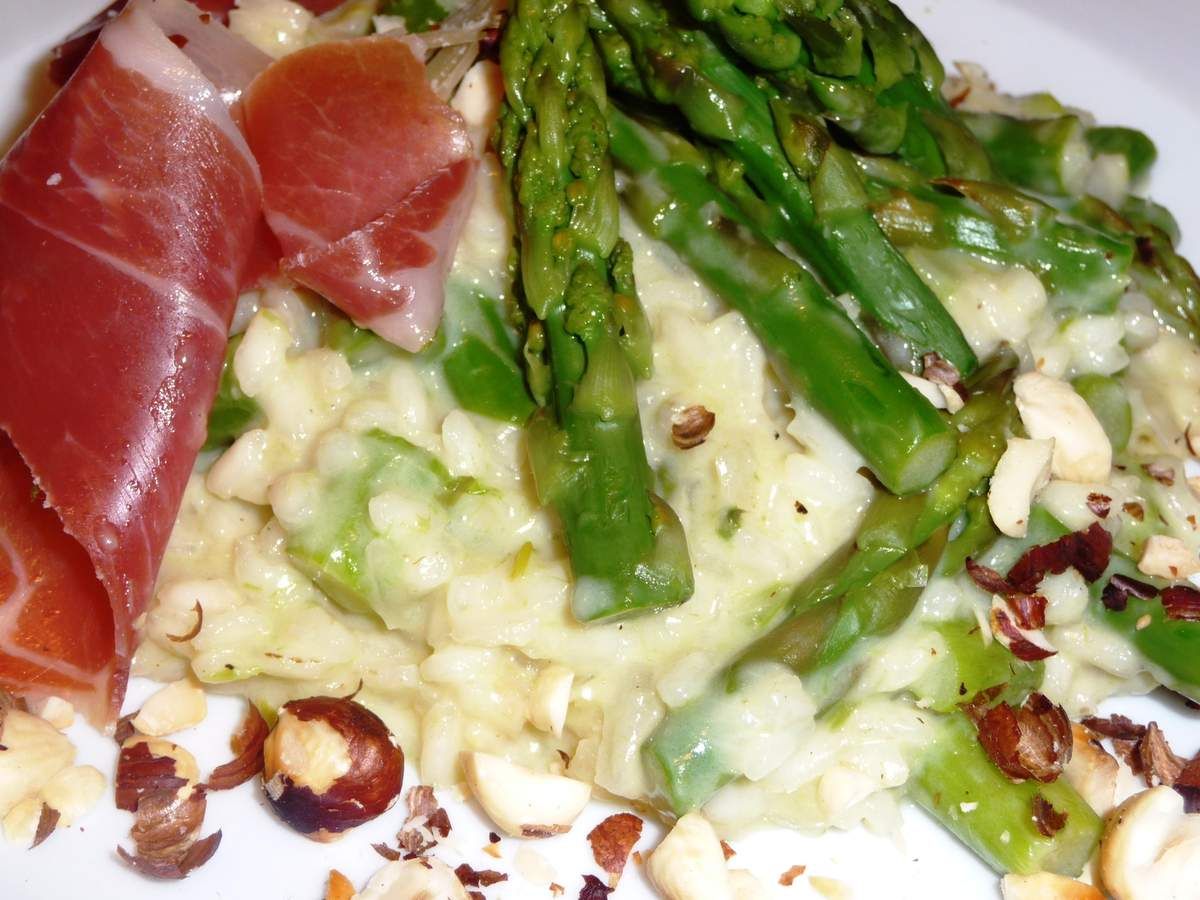 Ce qui fait que ce risotto a un VRAI goût d'asperges! Le jambon cru se marie bien entendu parfaitement avec les asperges et les noisettes ajoutent du croquant et un petit goût extra à la recette.
