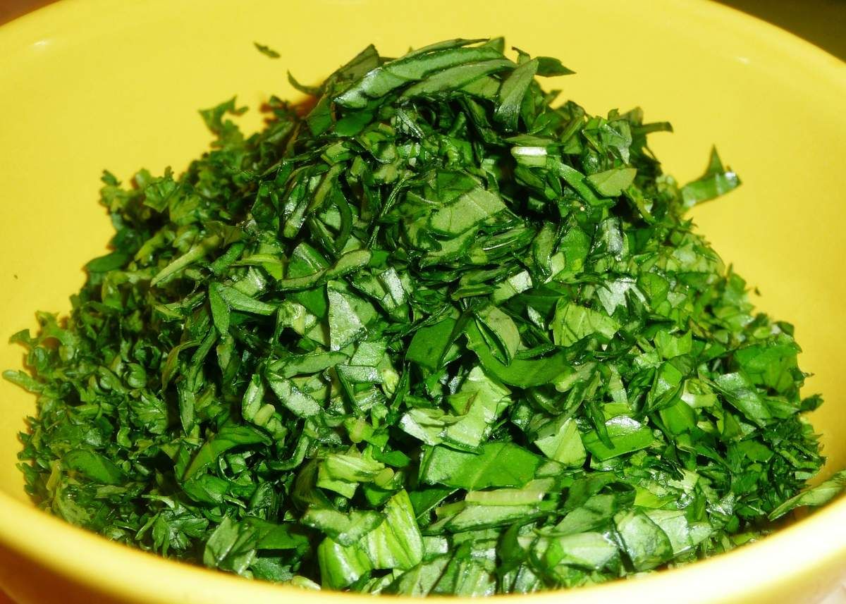 2) Hacher finement toutes les herbes et réserver dans un bol.