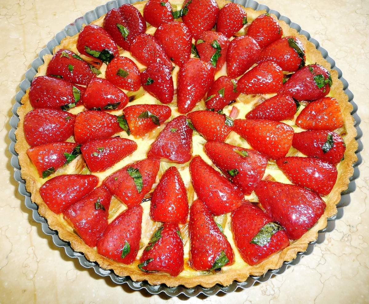 Si vous souhaitez faire une tarte à la rhubarbe sans fraises, procéder de même mais en ajoutant 100 à 200g de rhubarbe et arrêtez-vous au point 3.